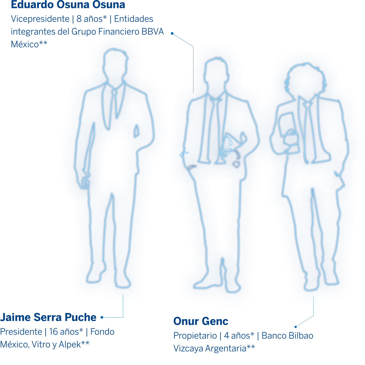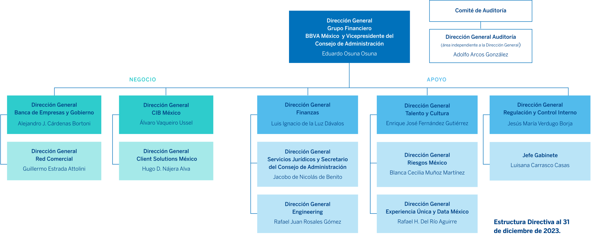 El equipo directivo de Grupo Financiero BBVA México es responsable de la toma de decisiones, así como de la implementación y seguimiento de los procesos para garantizar el buen funcionamiento del Grupo.