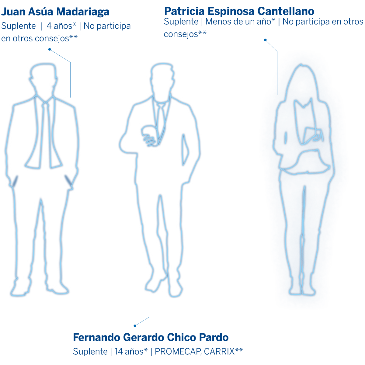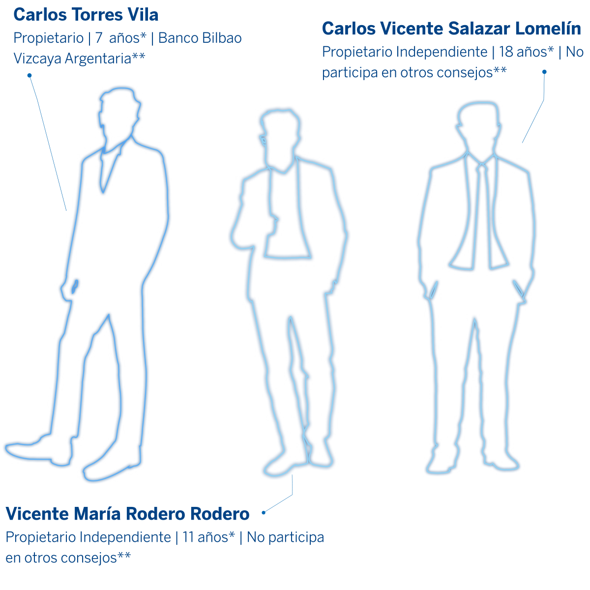El Consejo está integrado por 18 miembros, 10 miembros propietarios y 8 suplentes. Siete consejeros son independientes y tres son mujeres.